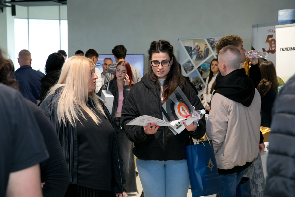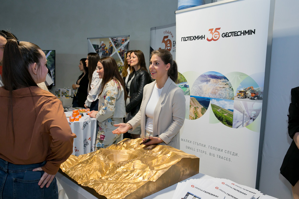 След дискусионните панели студентите имаха възможност да продължат разговорите с представителите на компаниите в рамките на обособените фирмени щандове. В тях взеха участие „Асарел-Медет“ АД, „Елаците-Мед“ АД, „Геотехмин“ ООД, „Геотрейдинг“ АД, „Геострой“ АД и „ДПМ Металс“, които представиха конкретни възможности за стажове, стипендиантски програми и кариерно развитие. Студентите получиха детайлна и практически насочена информация за условията за кандидатстване и професионалната реализация в дружествата.