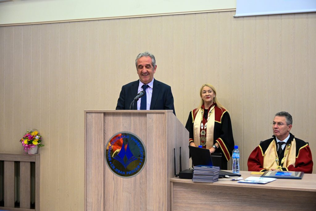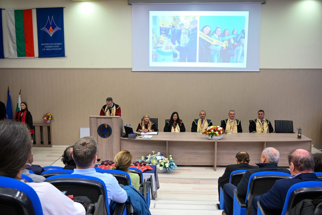 Ректорът на университета проф. д-р Ивайло Копрев поздрави студентите, преподавателите и гостите, като подчерта, че МГУ вече 72 години е водещ център за инженерно образование и научни изследвания в областта на природните ресурси.