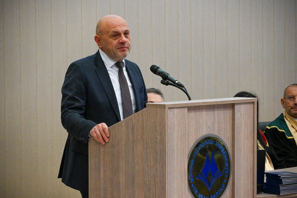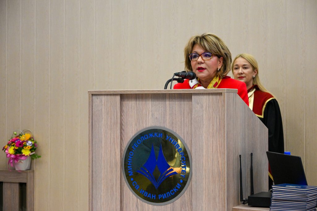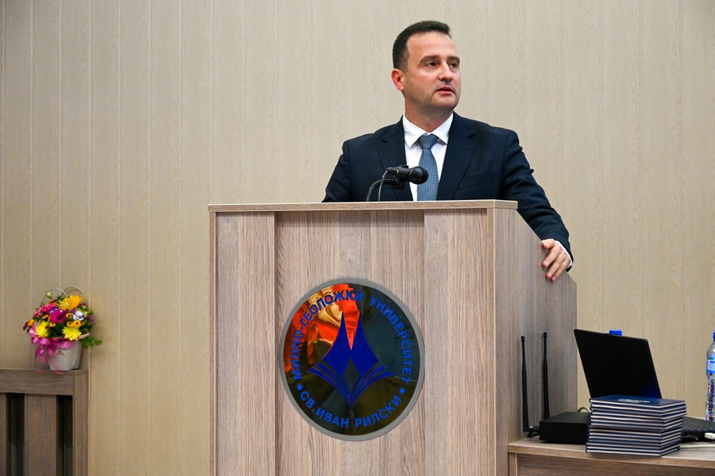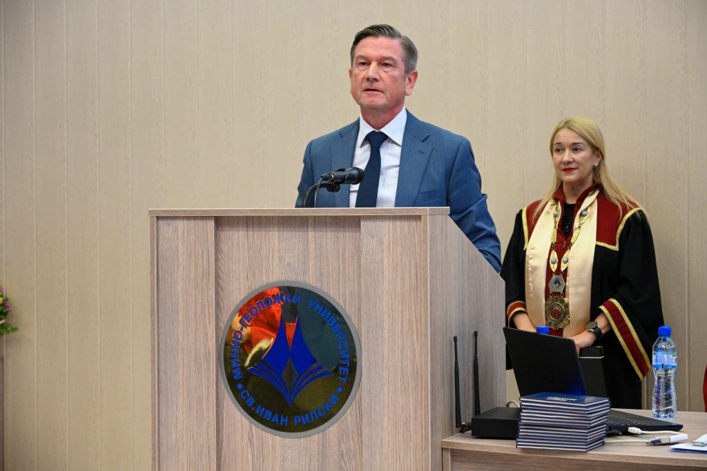 „Това е много специален университет. Не само като профил, а еталон на пряката връзка между теория и практика – на образование и бизнес. Тук се изучава професия на бъдещето, защото без добивната индустрия нито една индустриална революция – нито настоящата, нито бъдещите – не би била възможна.“ – заяви в приветствието си към академичната общност заместник министър-председателят и министър на иновациите и растежа г-н Томислав Дончев.