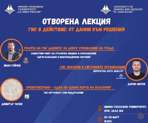 На 25 март 2026 г. от 10:00 ч. в зала 303 в Минно-технологичния факултет към Минно-геоложки университет „Св. Иван Рилски“ ще се проведе отворената лекция „ГИС в действие: От данни към решения“. Събитието ще събере утвърдени специалисти, които ще представят различни гледни точки към приложението на географските информационни системи в...