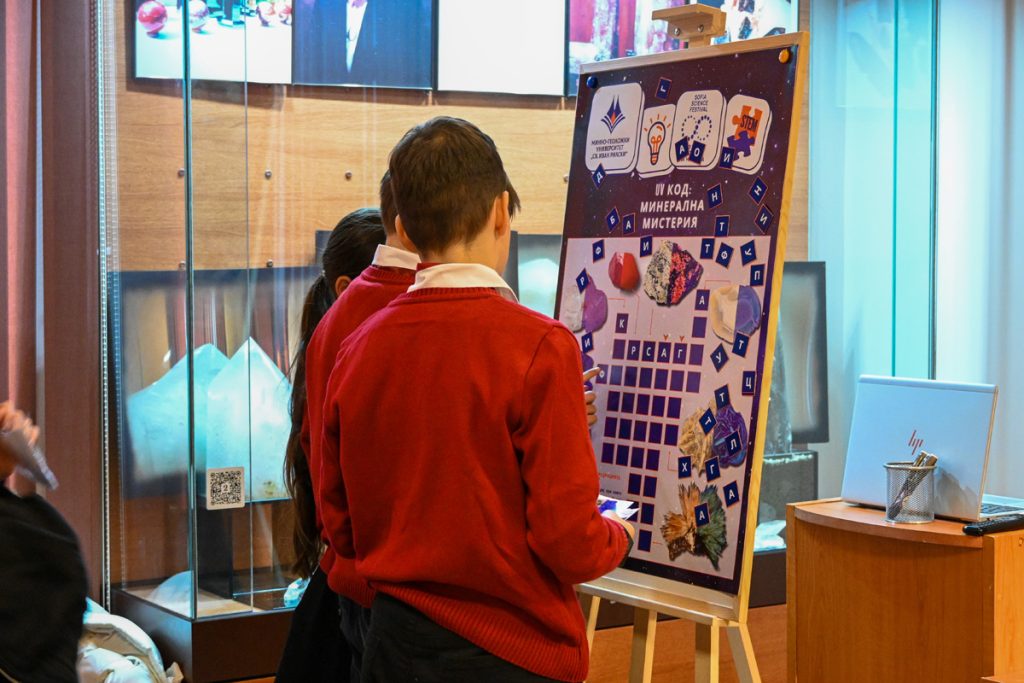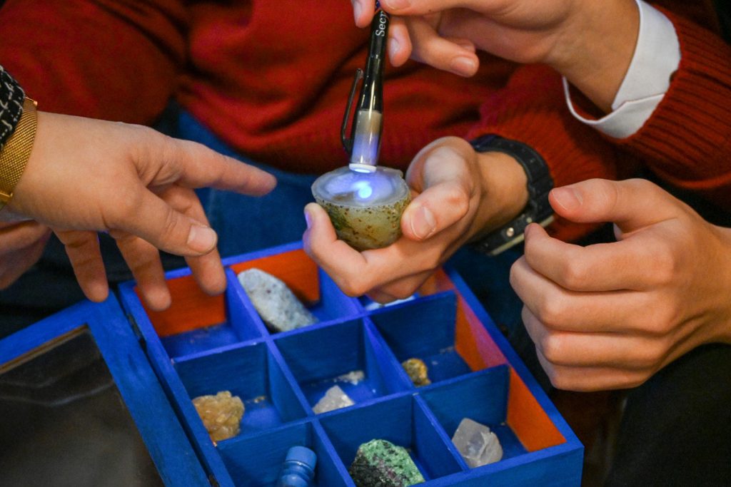Гостите разгледаха богатите музейни колекции на университета и участваха в открит урок, воден от гл. ас. д-р Камелия Маринова. Учениците научиха повече за значението на минералогията, проведоха опити за определяне твърдостта на различни минерали и наблюдаваха впечатляващото явление флуоресценция.