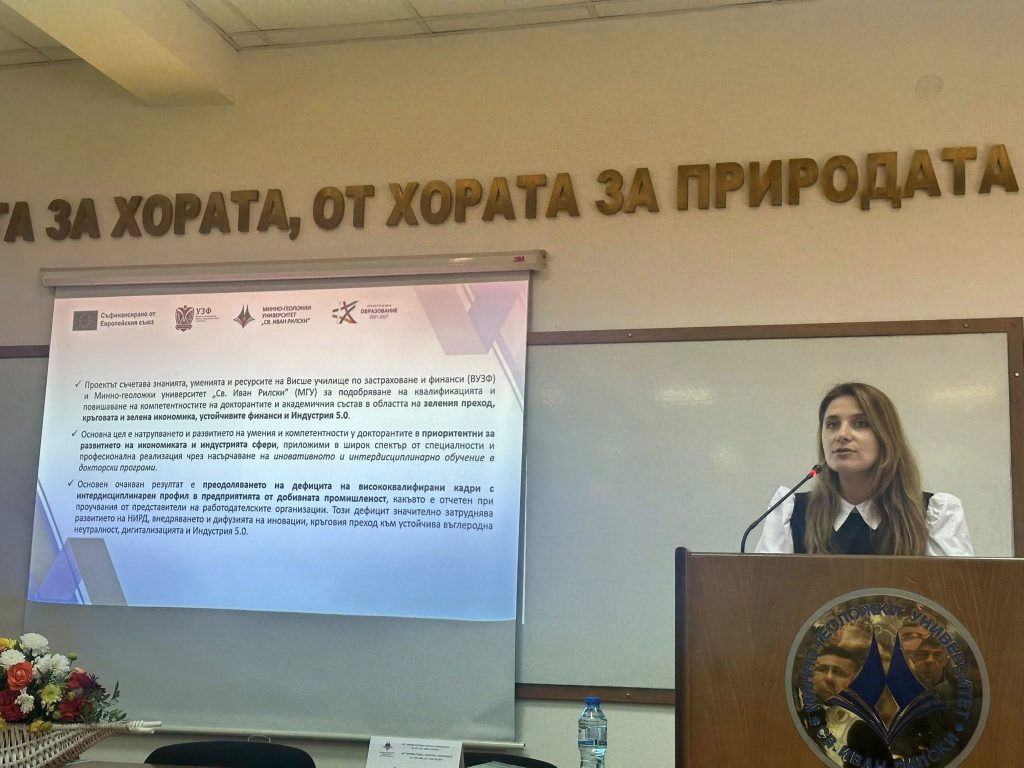 На 17 октомври 2025 г., в рамките на престижната 68-ма Международна научна конференция на Минно-геоложкия университет „Св. Иван Рилски“, се проведе информационна среща по проект BG05SFPR001-3.004-0002-C01 – „Развитие и усъвършенстване на професионалното и интердисциплинарно образование в техническите и икономическите науки и повишаване на научноизследователския капацитет на добивната промишленост чрез проектна докторантура“. Събитието се състоя в сградата на Миннотехнологичния факултет на МГУ и събра представители на академичната и бизнес общността, организаторите и участниците в проекта.