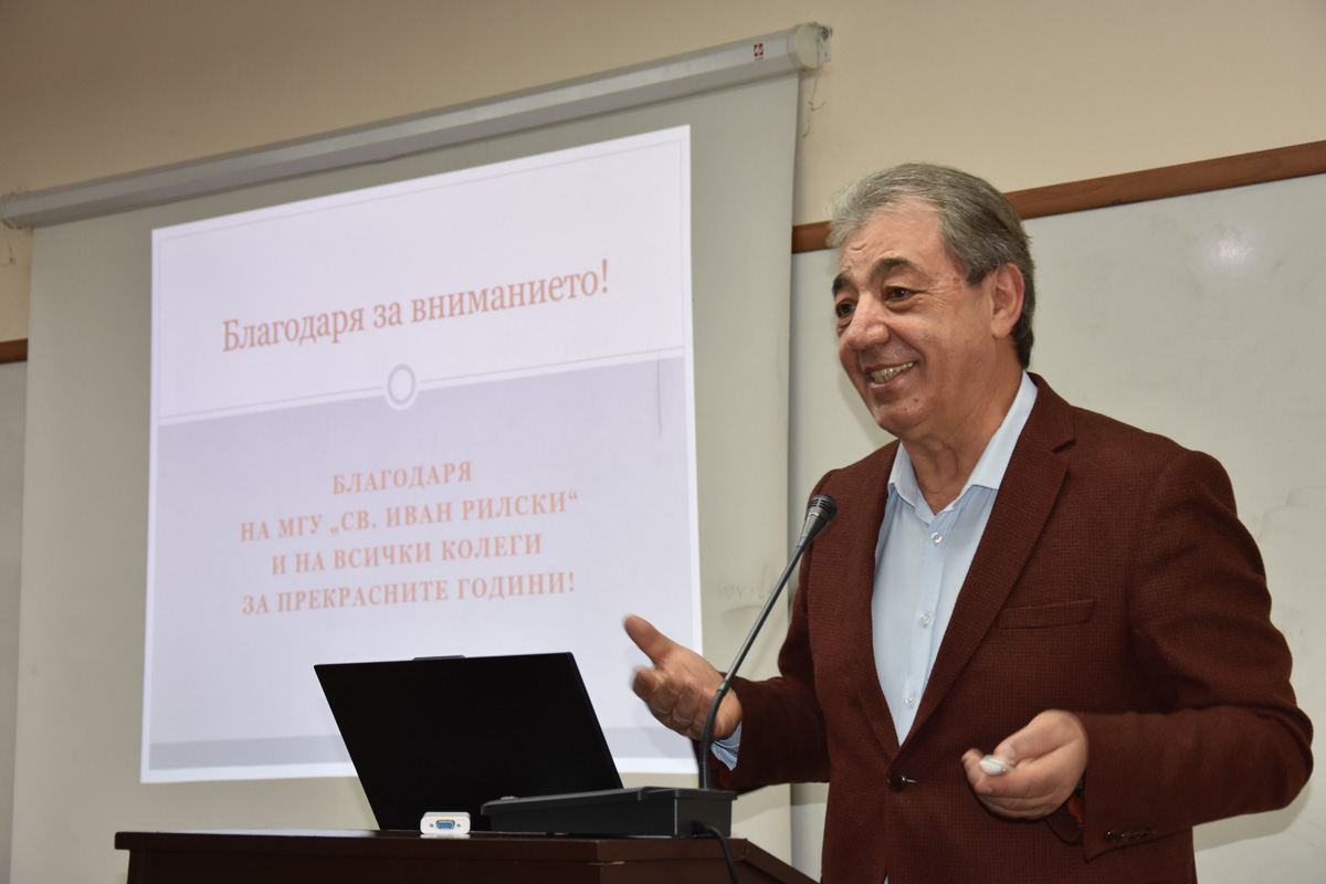 На 03.05.2023 г. проф. дн Вили Лилков (катедра Физика) изнесе публична лекция – част от впечатляващите лекции, които ознаменуват 70-тата година от обявяването на МГУ за самостоятелно висше училище. По емоционален и вдъхновяващ начин, проф. Лилков се върна много назад във времето, разказвайки за корените на катедра „Физика“, отдавайки почит на всичките й членове през годините.