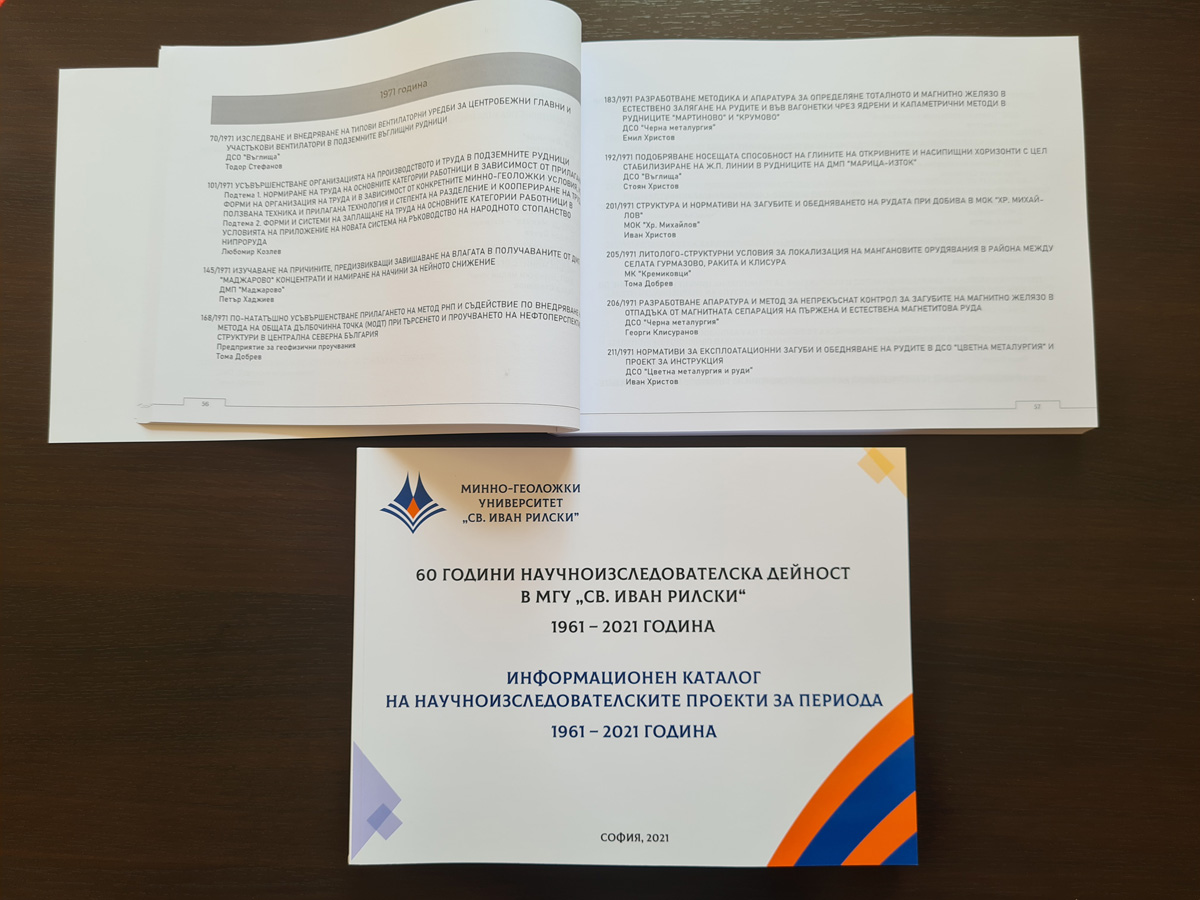 Дни преди началото на 64–та Международна научна конференция на Минно-Геоложки Университет „Св. Иван Рилски“, Научноизследователския сектор към МГУ отбелязва 60 години от създаването си с подробен информационен каталог на научноизследователските проекти за периода 1961 – 2021 година.