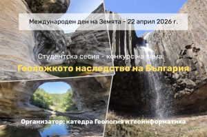 По повод Международния ден на Земята катедра Геология и геоинформатика, МГУ „Св. Иван Рилски“ организира Студентска сесия – конкурс на тема: Геоложкото наследство на България Геоложкото наследство включва геолого-геоморфоложки обекти (геофеномени) и зони с висока научна, образователна, културна или естетическа стойност. Тези обекти предоставят ключова информация за еволюцията на Земята,...